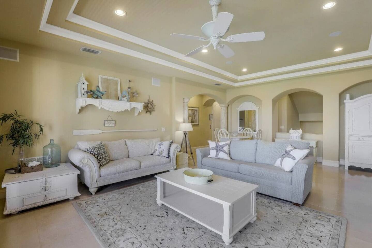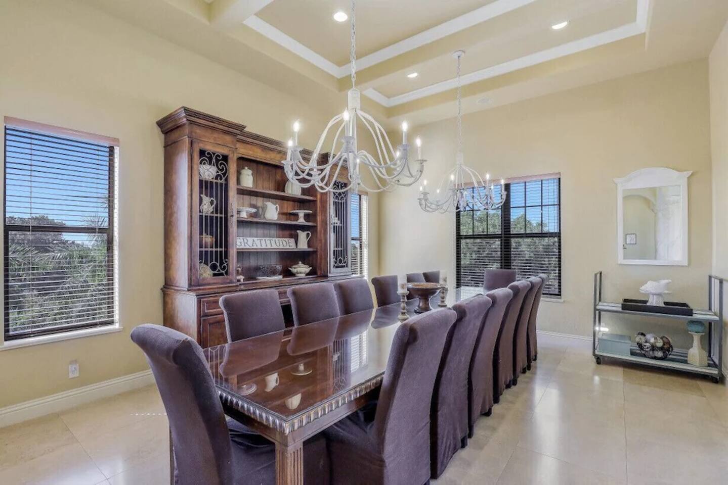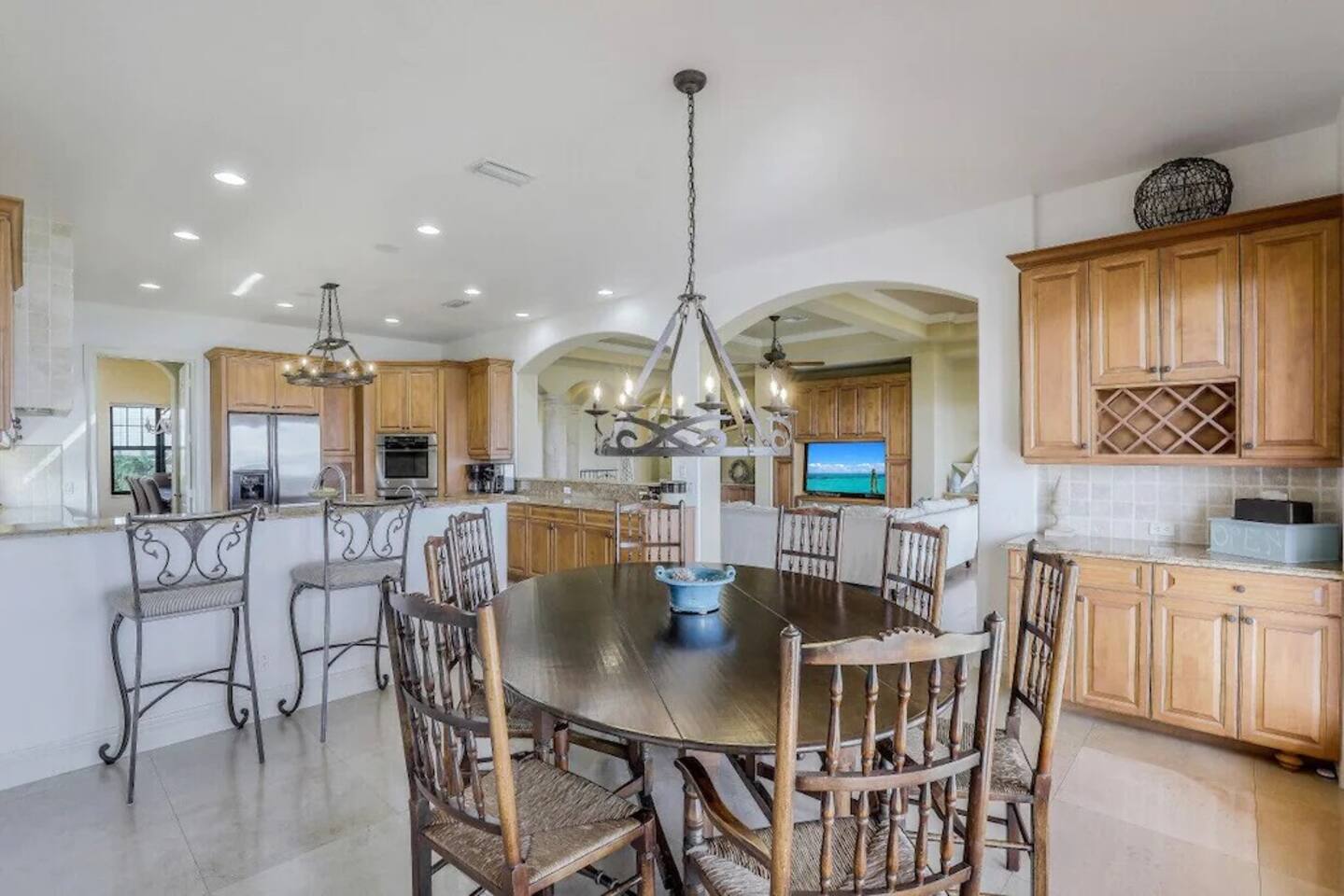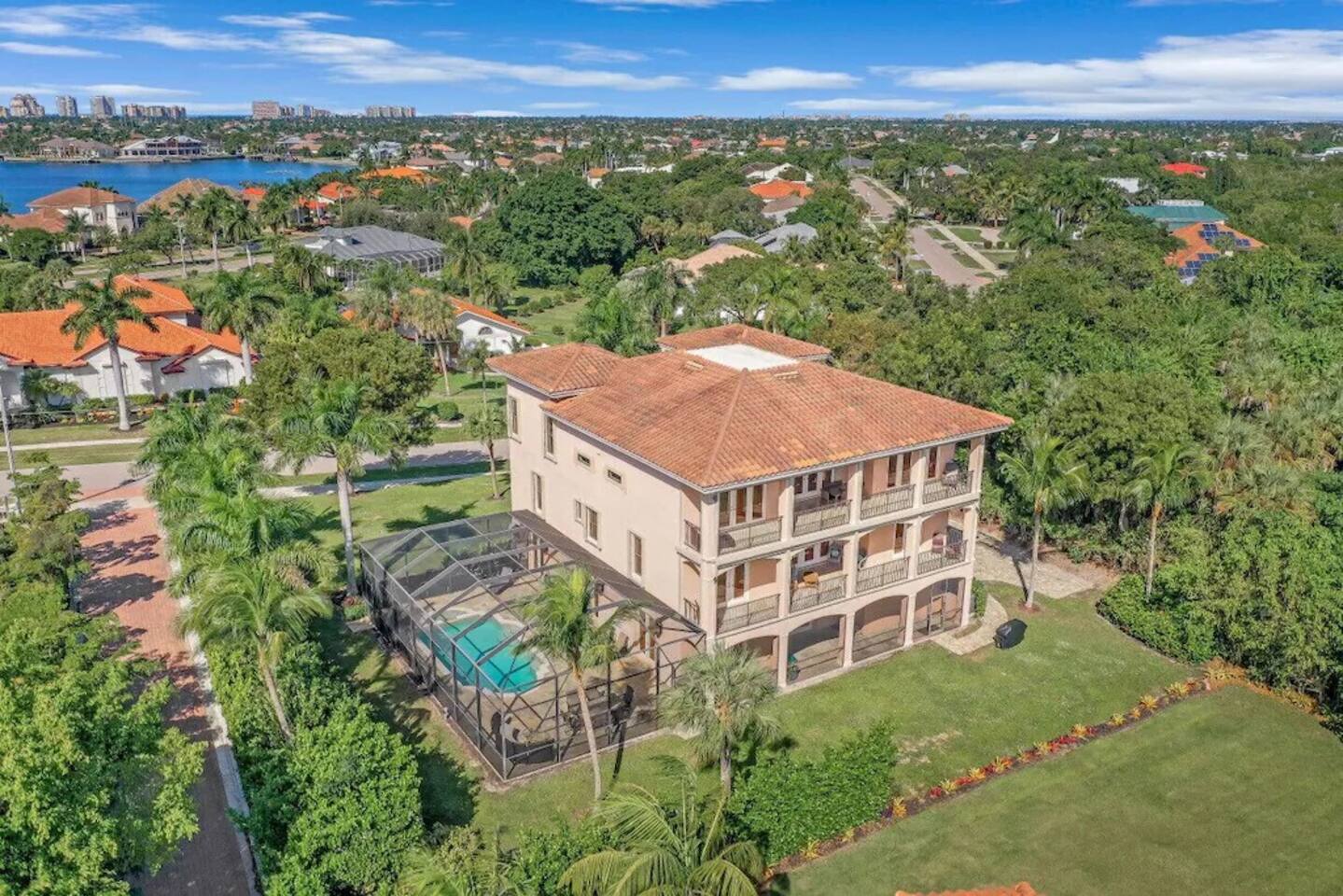 Discover one of Marco Island’s premier homes—an exceptional multi-level retreat designed for a truly unforgettable stay. From the moment you arrive, you’ll be greeted by breathtaking panoramic views, with sunrises over the Everglades and stunning sunsets across the Marco Island skyline. Inside, soaring ten-foot ceilings and expansive, light-filled living spaces create a bright and welcoming atmosphere. The home features elegant Italian marble tile, granite countertops, and high-end appliances throughout. An elevator servicing all three levels provides effortless access for guests of all ages. Highlights of your stay include: -Private heated pool for year-round relaxation -Fully equipped kitchen with ample dinnerware, glassware, and bakeware—perfect for large groups -High-speed Wi-Fi to keep everyone connected -Beach essentials including beach towels, beach chairs, and toys for your days by the water -Blackout blinds in all bedrooms for a restful, uninterrupted night’s sleep Bedroom descriptions: -Third Floor - Bed 1: King with ensuite bath and walk-in closet (pack-n-play provided) -Second Floor - Bed 2: King with ensuite bath (with separate shower) and walk-in closet -Second Floor - Bed 3: King with ensuite bathroom with shower and walk-in closet -Second Floor - Bed 4: 4 Twins (2 bunk-bed sets) – attached bathroom with shower and walk-in closet -Second Floor - Office: Queen-sized air mattress is located in two-drawer file, if needed -Second Floor – Family Room: Double hide-a-bed sleeper couch -First Floor - Bed 5: King – shared Jack-n-Jill bathroom with shower -First Floor - Bed 6: 4 Twins (2 bunk-bed sets) - shared Jack-n-Jill bathroom with shower -First Floor- Bed 6: Double hide-a-bed sleeper couch